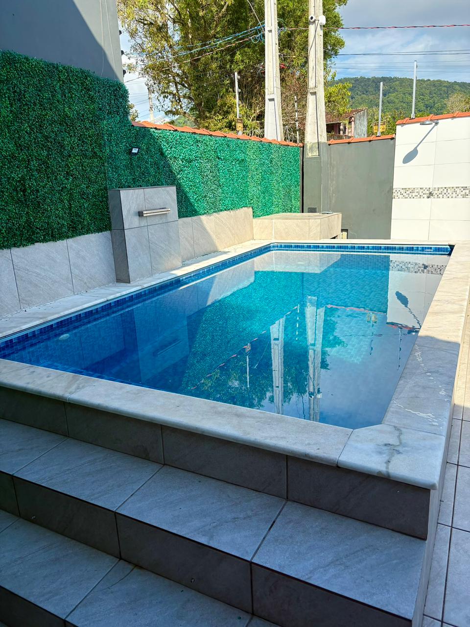 Aproveite uma piscina exclusiva com iluminação LED moderna, perfeita para relaxar a qualquer hora do dia ou da noite.